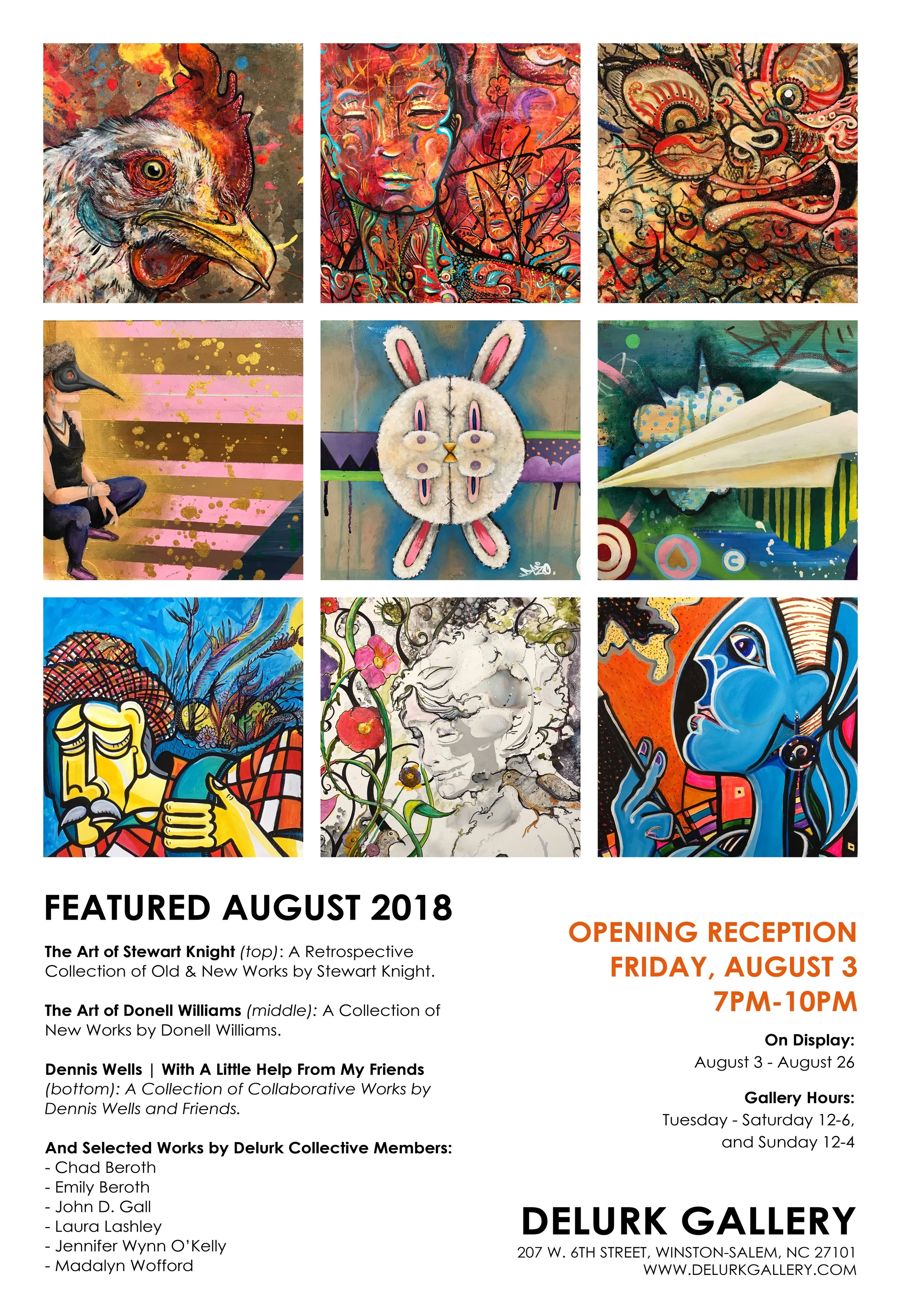 A collection of collaborative works between Dennis Wells and local artists including; Jennifer O’Kelly, Laura Lashley, Stewart Knight, Chad Beroth, Jack Hernon, Canvas Aesthetics, Donell Williams, Tammy Willard, Dane Walters, Marsha Hierl and Kendall Doub.