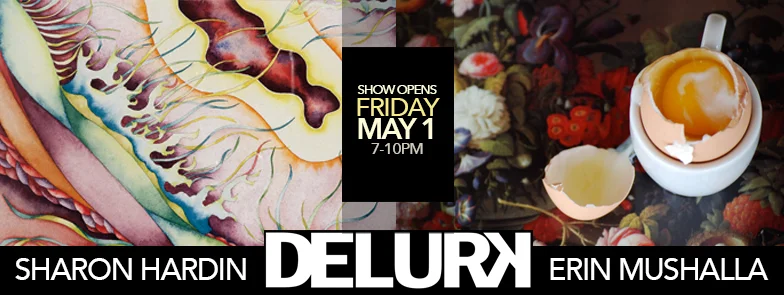 Delurk Gallery’s May exhibit will feature two soul-gazingly, beautiful shows: the precise, abstract and biological watercolor works of Sharon Hardin, and the illuminating, painterly photography of Erin Mushalla.